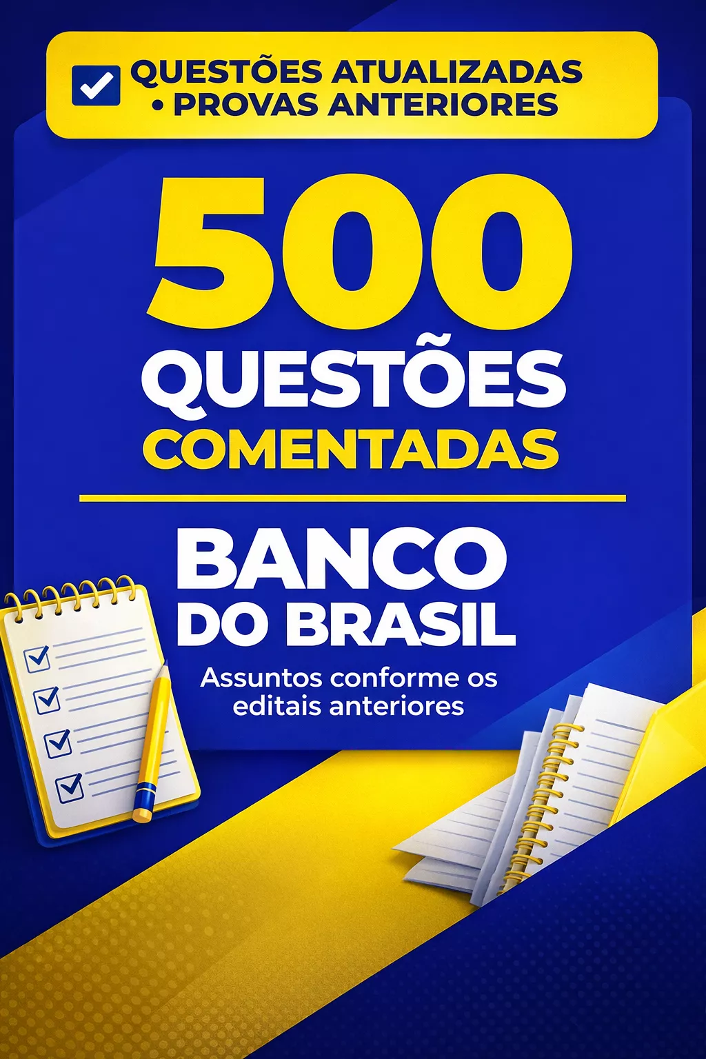 Prepare-se com estratégia, foco e direcionamento para o concurso do Banco do Brasil com o material '500 Questões Comentadas do Concurso Banco do Brasil'. Aprenda a identificar padrões de cobrança, errar menos e acertar mais com 500 questões comentadas retiradas de provas anteriores. Adquira o material agora e ganhe velocidade e segurança na prova do Banco do Brasil.